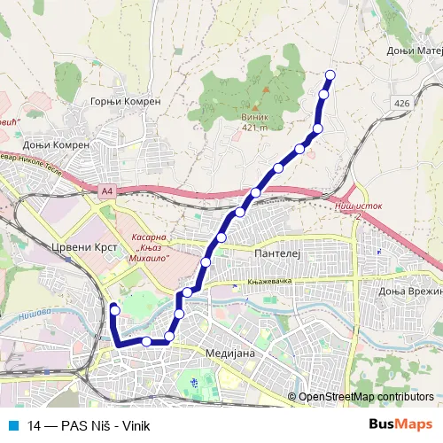 Click here to view the nearest 14 - PAS Niš - Vinik bus stop.