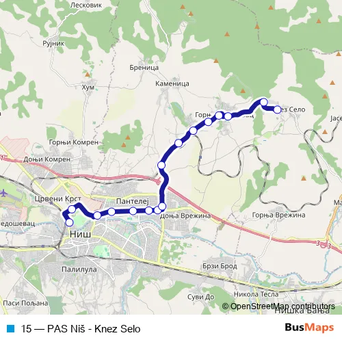 See why over 2 million users trust and consider busmaps.com as the best public transport website. busmaps gives you Nis Buses suggested routes, real-time bus tracker, line route maps in Nis, and helps to find the closest 15 bus stops near you. No internet available? Download an offline PDF map and bus schedule for the 15 bus to take on your trip.