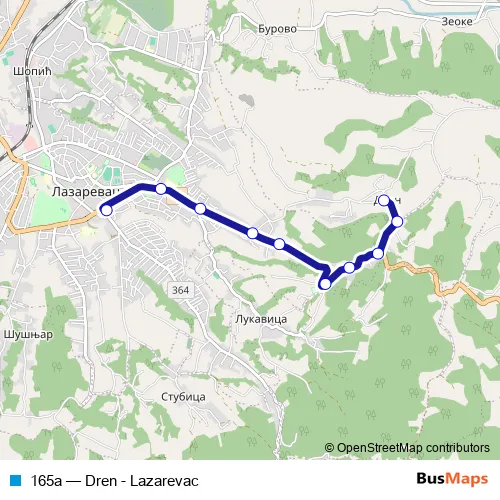 Click here to view the nearest 165a - Dren - Lazarevac bus stop.