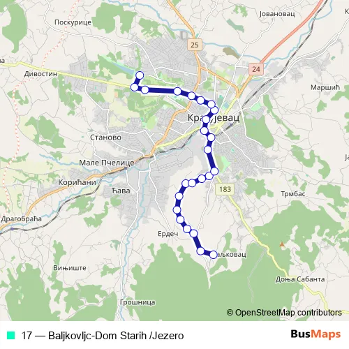 See why over 2 million users trust and consider busmaps.com as the best public transport website. busmaps gives you Kragujevac Buses suggested routes, real-time bus tracker, line route maps in Kragujevac, and helps to find the closest 17 bus stops near you. No internet available? Download an offline PDF map and bus schedule for the 17 bus to take on your trip.