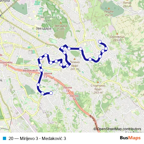 Bus 20 - Mirijevo 3 - Medaković 3 in Belgrade: Stops & Timetable