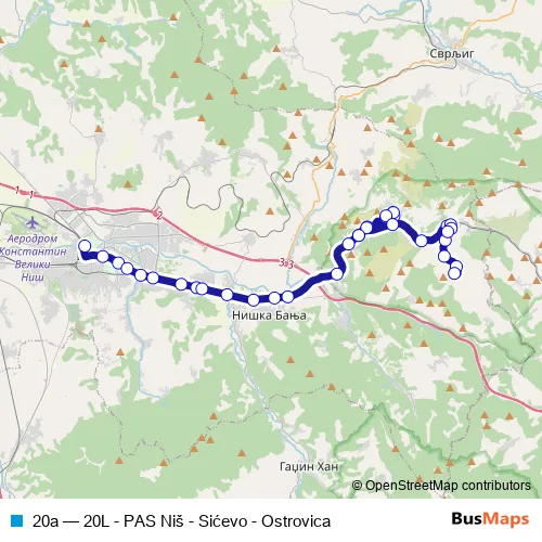 Bus 20a - 20L - PAS Niš - Sićevo - Ostrovica: Full Schedule in Nis