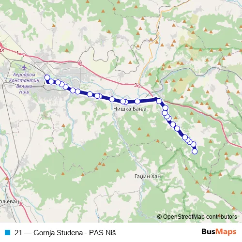 Bus 21 - Gornja Studena - PAS Niš in Niska Banja: Stops & Timetable