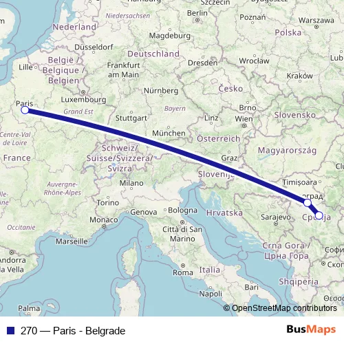 Click here to view the nearest 270 - Paris - Belgrade bus stop.