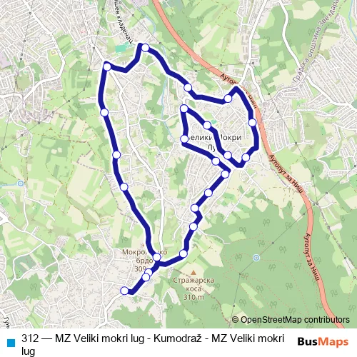 312 (MZ Veliki mokri lug - Kumodraž - MZ Veliki mokri lug) Bus in Belgrade