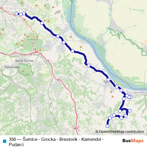 The first stop of the 356 bus route is Ilinski kraj - Okretnica and the last stop is Šumice. 356 (Šumice - Grocka - Brestovik - Kamendol - Pudarci) is operational during on weekdays.