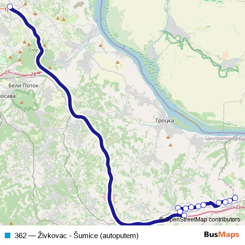 Click here to view the nearest 362 - Živkovac - Šumice (autoputem) bus stop.