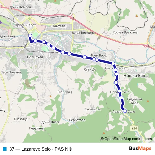 Bus 37 - Lazarevo Selo - PAS Niš in Nis: Stops & Timetable