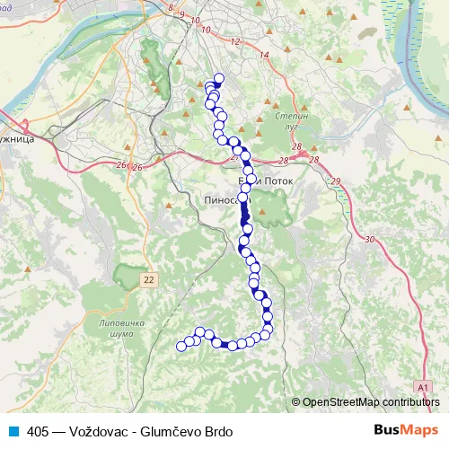 Bus 405 - Voždovac - Glumčevo Brdo: Full Schedule in Belgrade