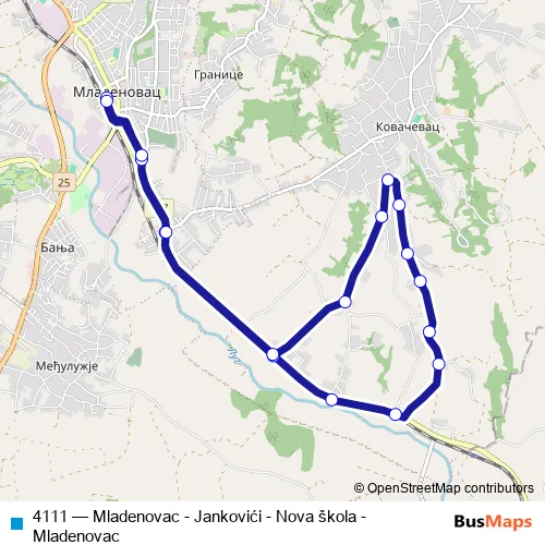 Click here to view the nearest 4111 - Mladenovac - Jankovići - Nova škola - Mladenovac bus stop.