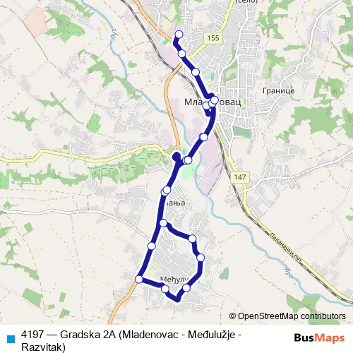 Click here to view the nearest 4197 - Gradska 2A (Mladenovac - Međulužje - Razvitak) bus stop.
