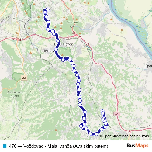Click here to view the nearest 470 - Voždovac - Mala Ivanča (Avalskim putem) bus stop.