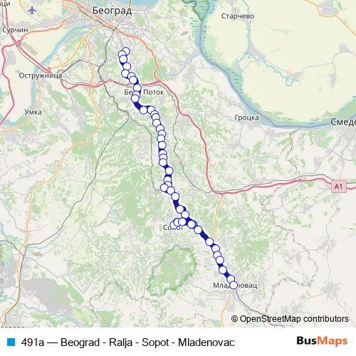 The first stop of the 491a bus route is Voždovac and the last stop is Mladenovac As. 491a (Beograd - Ralja - Sopot - Mladenovac) is operational during everyday.
