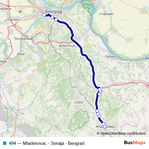 Click here to view the nearest 494 - Mladenovac - Senaja - Beograd bus stop.