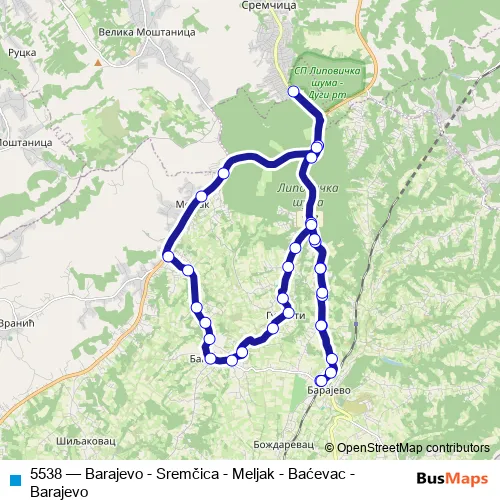 Click here to view the nearest 5538 - Barajevo - Sremčica - Meljak - Baćevac - Barajevo bus stop.