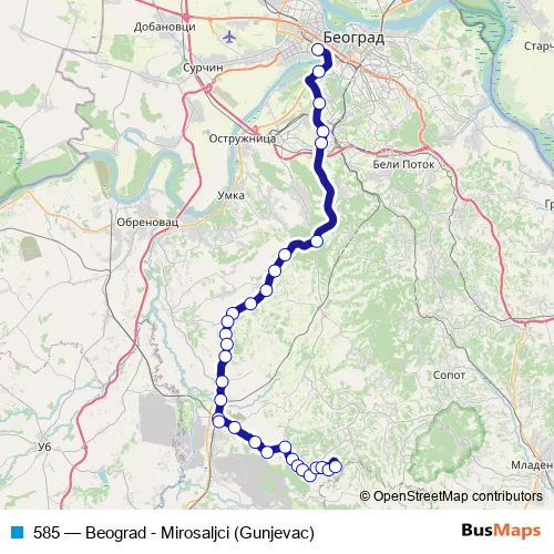 Click here to view the nearest 585 - Beograd - Mirosaljci (Gunjevac) bus stop.