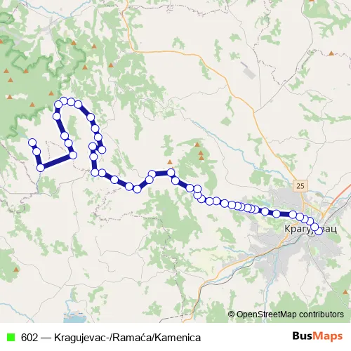 Bus 602 - Kragujevac-/Ramaća/Kamenica Schedule in Kragujevac