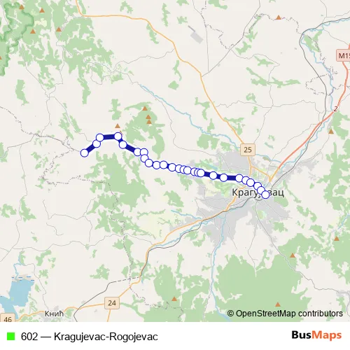 Bus 602 - Kragujevac-Rogojevac in Kragujevac: Stops & Timetable