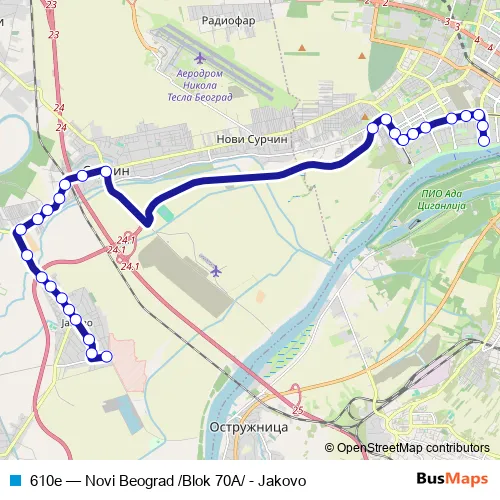 Click here to view the nearest 610e - Novi Beograd /Blok 70A/ - Jakovo bus stop.