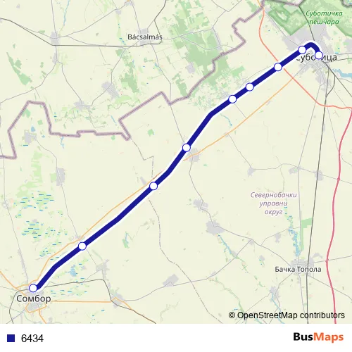 The first stop of the 6434 rail route is Sombor and the last stop is Subotica. 6434 is operational during everyday.