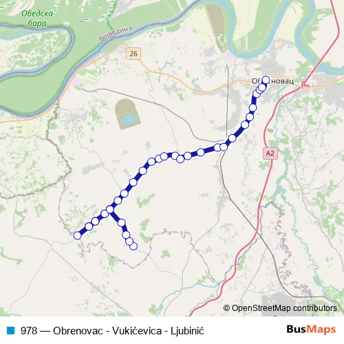The first stop of the 978 bus route is Ljubinić - okretnica and the last stop is Obrenovac As. 978 (Obrenovac - Vukićevica - Ljubinić) is operational during everyday.