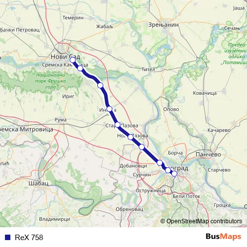 The first stop of the ReX 758 rail route is Beograd centar and the last stop is Petrovaradin. ReX 758 is operational during everyday.