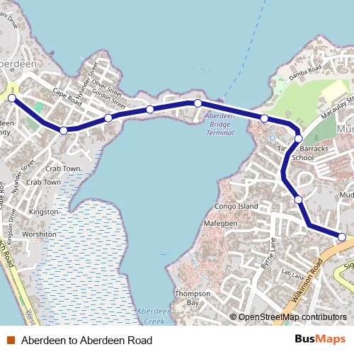 See why over 2 million users trust and consider busmaps.com as the best public transport website. busmaps gives you Freetown Buses suggested routes, real-time bus tracker, line route maps in Freetown, and helps to find the closest Aberdeen to Aberdeen Road bus stops near you. No internet available? Download an offline PDF map and bus schedule for the Aberdeen to Aberdeen Road bus to take on your trip.