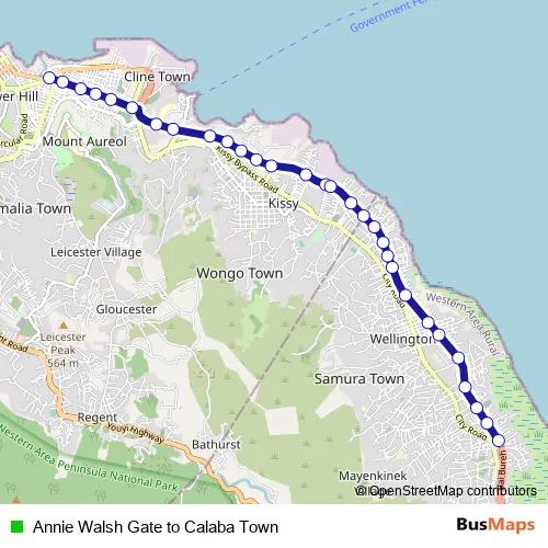 Annie Walsh Gate to Calaba Town bus Route Map