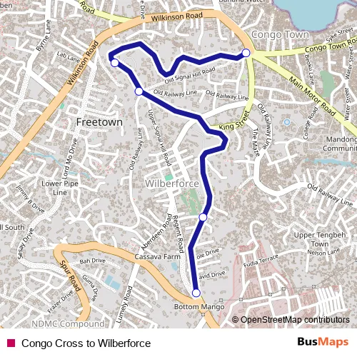 See why over 2 million users trust and consider busmaps.com as the best public transport website. busmaps gives you Freetown Buses suggested routes, real-time bus tracker, line route maps in Freetown, and helps to find the closest Congo Cross to Wilberforce bus stops near you. No internet available? Download an offline PDF map and bus schedule for the Congo Cross to Wilberforce bus to take on your trip.