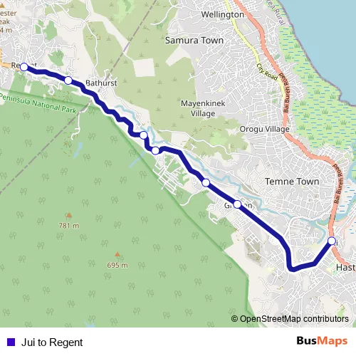See why over 2 million users trust and consider busmaps.com as the best public transport website. busmaps gives you Freetown Buses suggested routes, real-time bus tracker, line route maps in Freetown, and helps to find the closest Jui to Regent bus stops near you. No internet available? Download an offline PDF map and bus schedule for the Jui to Regent bus to take on your trip.