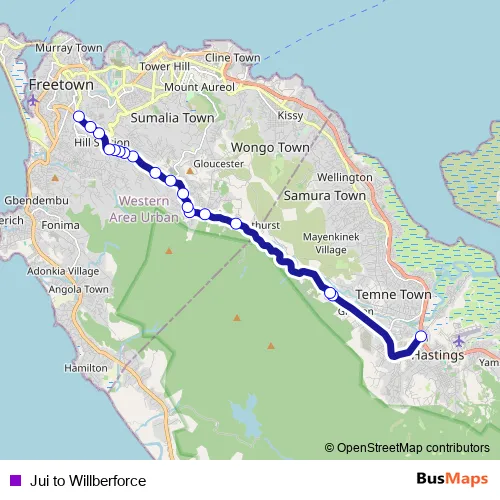 Bus Jui to Willberforce in Freetown: Stops & Timetable