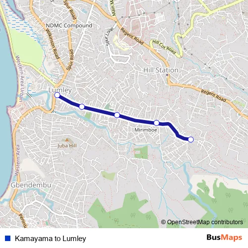 See why over 2 million users trust and consider busmaps.com as the best public transport website. busmaps gives you Freetown Buses suggested routes, real-time bus tracker, line route maps in Freetown, and helps to find the closest Kamayama to Lumley bus stops near you. No internet available? Download an offline PDF map and bus schedule for the Kamayama to Lumley bus to take on your trip.