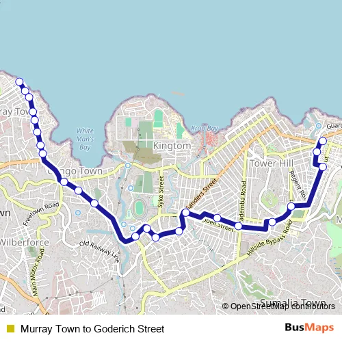 See why over 2 million users trust and consider busmaps.com as the best public transport website. busmaps gives you Freetown Buses suggested routes, real-time bus tracker, line route maps in Freetown, and helps to find the closest Murray Town to Goderich Street bus stops near you. No internet available? Download an offline PDF map and bus schedule for the Murray Town to Goderich Street bus to take on your trip.