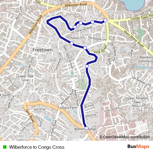 See why over 2 million users trust and consider busmaps.com as the best public transport website. busmaps gives you Freetown Buses suggested routes, real-time bus tracker, line route maps in Freetown, and helps to find the closest Wilberforce to Congo Cross bus stops near you. No internet available? Download an offline PDF map and bus schedule for the Wilberforce to Congo Cross bus to take on your trip.
