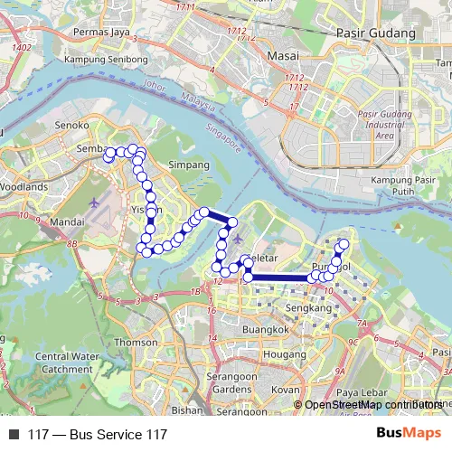 See why over 2 million users trust and consider busmaps.com as the best public transport website. busmaps gives you Singapore Buses suggested routes, real-time bus tracker, line route maps in Singapore, and helps to find the closest 117 bus stops near you. No internet available? Download an offline PDF map and bus schedule for the 117 bus to take on your trip.