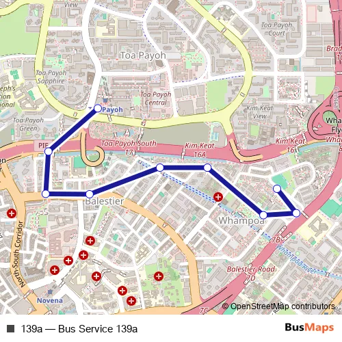 The first stop of the 139a bus route is Toa Payoh Int and the last stop is Bet Blks 33/34. 139a (Bus Service 139a) is operational during everyday.