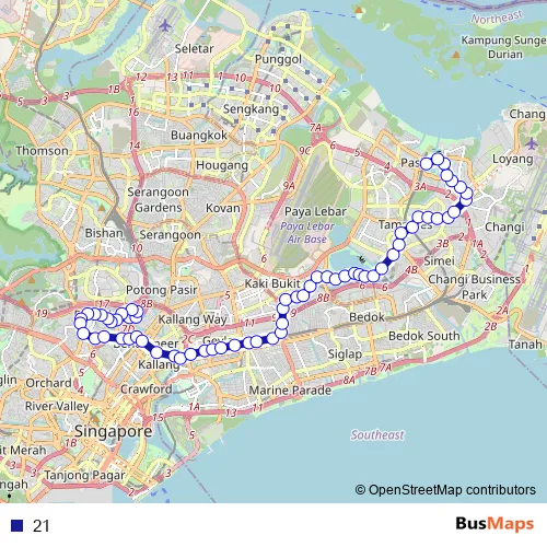 See why over 2 million users trust and consider busmaps.com as the best public transport website. busmaps gives you Singapore Buses suggested routes, real-time bus tracker, line route maps in Singapore, and helps to find the closest 21 bus stops near you. No internet available? Download an offline PDF map and bus schedule for the 21 bus to take on your trip.