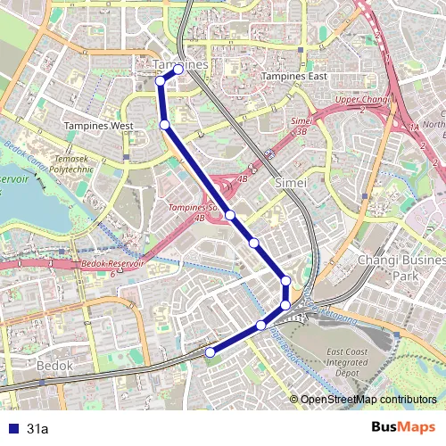 The first stop of the 31a bus route is Tampines Int and the last stop is Tanah Merah Stn Exit A. 31a is operational during on weekdays.