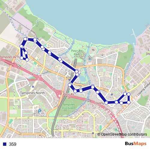 The first stop of the 359 bus route is Pasir Ris Int and the last stop is Pasir Ris Int. 359 is operational during everyday.