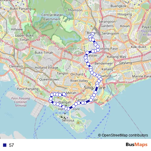 See why over 2 million users trust and consider busmaps.com as the best public transport website. busmaps gives you Singapore Buses suggested routes, real-time bus tracker, line route maps in Singapore, and helps to find the closest 57 bus stops near you. No internet available? Download an offline PDF map and bus schedule for the 57 bus to take on your trip.