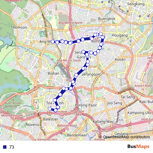 See why over 2 million users trust and consider busmaps.com as the best public transport website. busmaps gives you Singapore Buses suggested routes, real-time bus tracker, line route maps in Singapore, and helps to find the closest 73 bus stops near you. No internet available? Download an offline PDF map and bus schedule for the 73 bus to take on your trip.