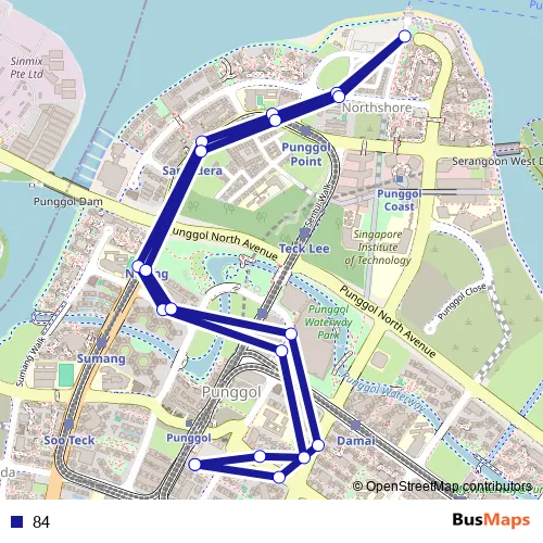 Punggol Place - Punggol Central - Punggol Road - Sentul Crescent - Sumang Link - Punggol Way - Northshore Drive - Punggol Road - Northshore Drive - Punggol Way - Sumang Link - Sentul Crescent - Punggol Road - Punggol Central - Punggol Place