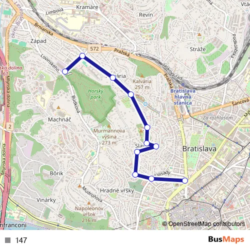 Bus 147 in Bratislava: Stops & Timetable