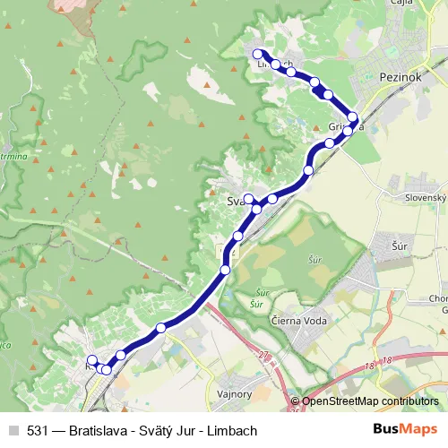 Bus 531 - Bratislava - Svätý Jur - Limbach Schedule in Pezinok
