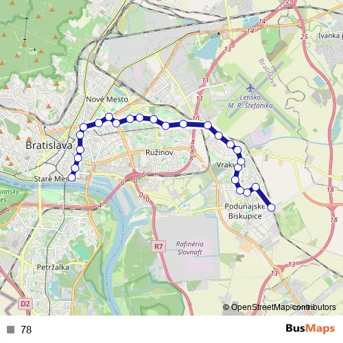 See why over 2 million users trust and consider busmaps.com as the best public transport website. busmaps gives you Bratislava Buses suggested routes, real-time bus tracker, line route maps in Bratislava, and helps to find the closest 78 bus stops near you. No internet available? Download an offline PDF map and bus schedule for the 78 bus to take on your trip.
