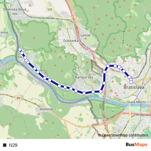See why over 2 million users trust and consider busmaps.com as the best public transport website. busmaps gives you Bratislava Buses suggested routes, real-time bus tracker, line route maps in Bratislava, and helps to find the closest N29 bus stops near you. No internet available? Download an offline PDF map and bus schedule for the N29 bus to take on your trip.