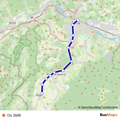 The first stop of the Os 3509 rail route is Rajec and the last stop is Žilina. Os 3509 is operational during everyday.