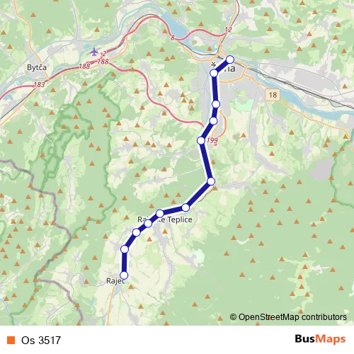 The first stop of the Os 3517 rail route is Rajec and the last stop is Žilina. Os 3517 is operational during everyday.