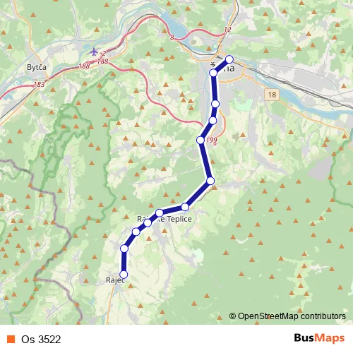 The first stop of the Os 3522 rail route is Žilina and the last stop is Rajec. Os 3522 is operational during everyday.