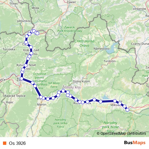 The first stop of the Os 3926 rail route is Liptovský Hrádok and the last stop is Skalité. Os 3926 is operational during on weekdays.